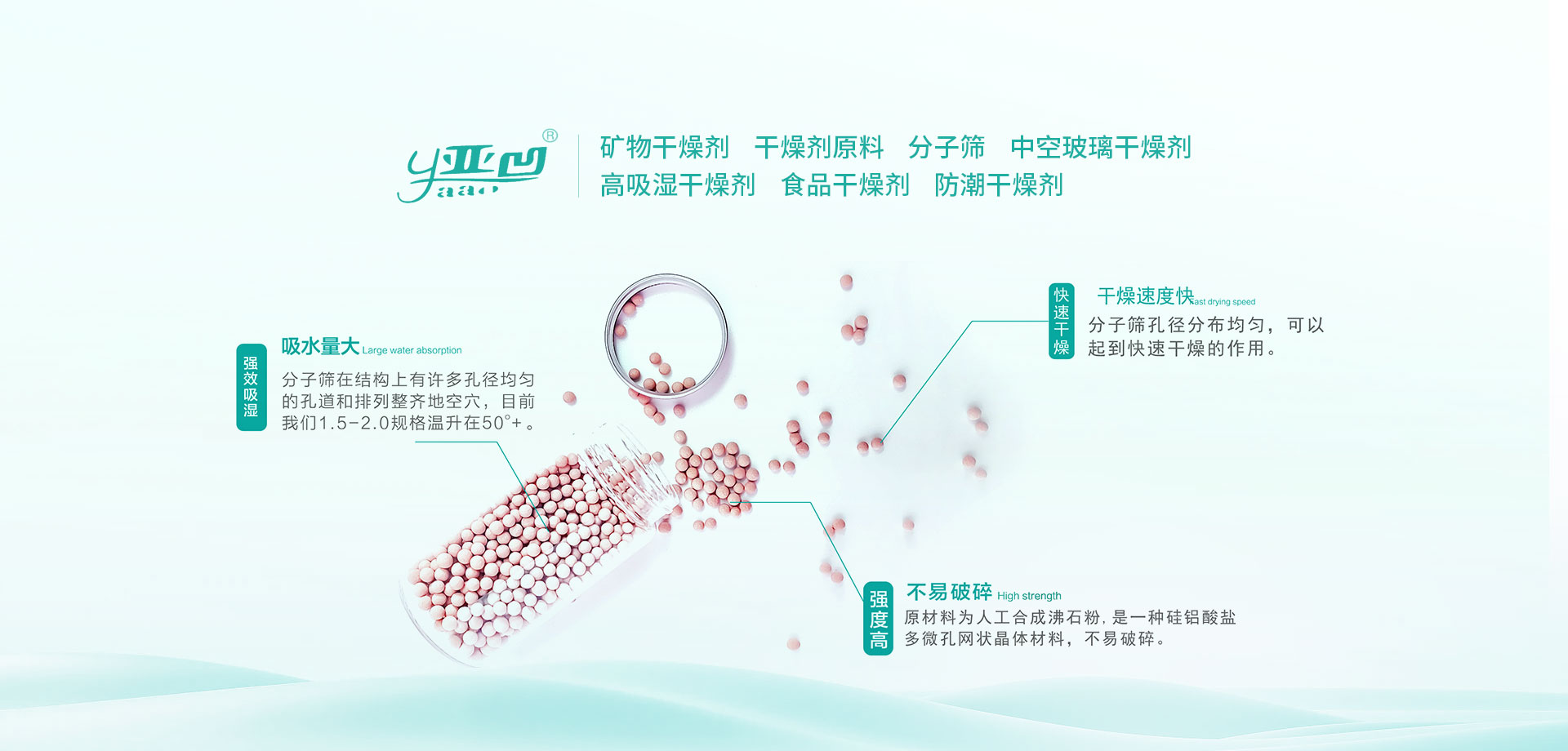 專注于中空玻璃分子篩的研發、生產和銷售,產品覆含中空玻璃干燥劑,百葉中空玻璃干燥劑,食用油脫色劑,汽車剎車干燥劑等